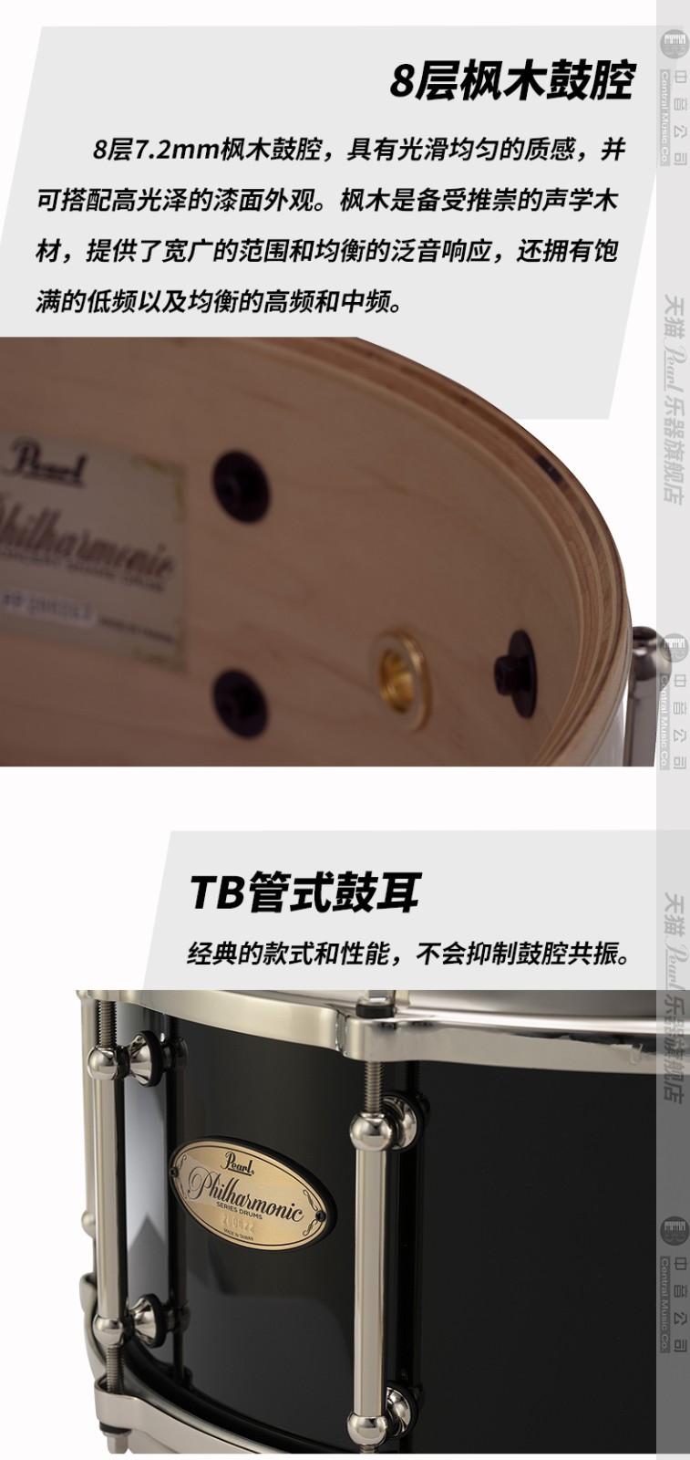 Pearl Philharmonic(爱乐)系列8层枫木军鼓