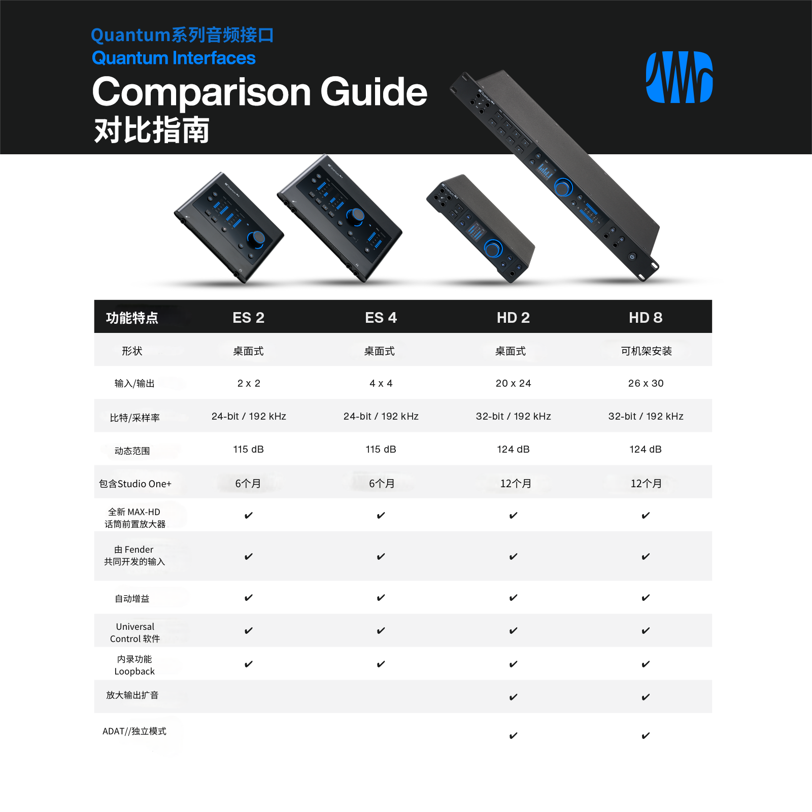 26 x 30 Quantum HD 8音频接口是 PreSonus 近 30 年设计经验的结晶,充分利用了 PreSonus 高端录音室产品的传统,创造出令人惊叹的高保真性能。